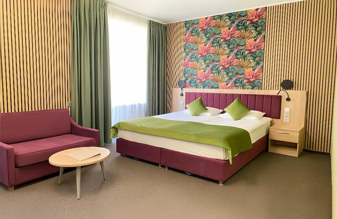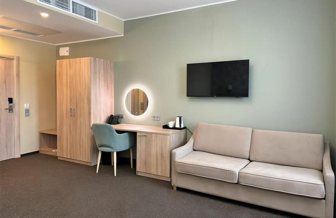 Детям до 4-х лет размещение бесплатное без предоставления места и питания. Дети с 4-х летнего возраста могут пройти необходимое лечение. На курорте гостей ждет идеальное сочетание релакса и восстановления, ведь в проживание входит: питание согласно выбранному тарифу, посещение бассейна, фитнес-центра и групповых занятий, консультация врача терапевта и прием уникальной минеральной воды.